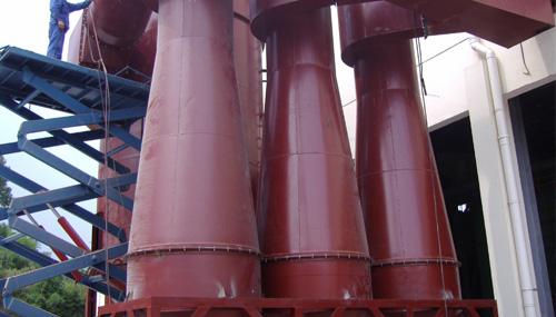 CLK擴散式旋風除塵器,適用于捕集干燥的非纖維性的顆粒狀粉塵,主要特點是筒身呈圓錐形,因而減少了含塵氣體自筒身中心短路到出口去的可能性,并裝有圓錐形的反射屏,防止兩次氣流將已經分離下來的粉塵重新卷起,被上升氣流帶出,因而提高了除塵效率.